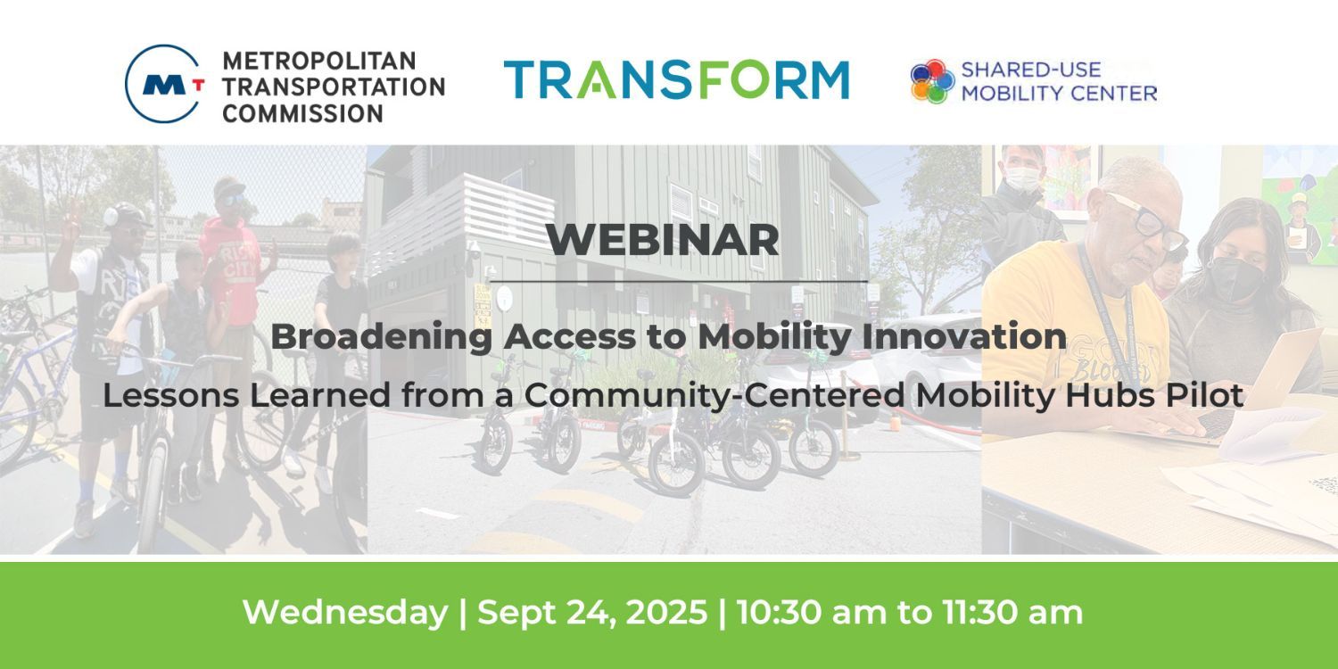 We're excited to announce a webinar on our groundbreaking report, Carsharing and Mobility Hubs in Affordable Housing: Process, Results & Lessons Learned. Transform’s deputy director, Carrie Harvilla, and program director Jennifer Ledet will be joined by Krute Singa from the Metropolitan Transportation Commission, Colin Murphy from the Shared Use Mobility Center, and Mobility Hub site leads Edith Figueroa from First Community Housing and David Cota from East Bay Asian Local Development Corporation to talk about our findings from this pioneering project.